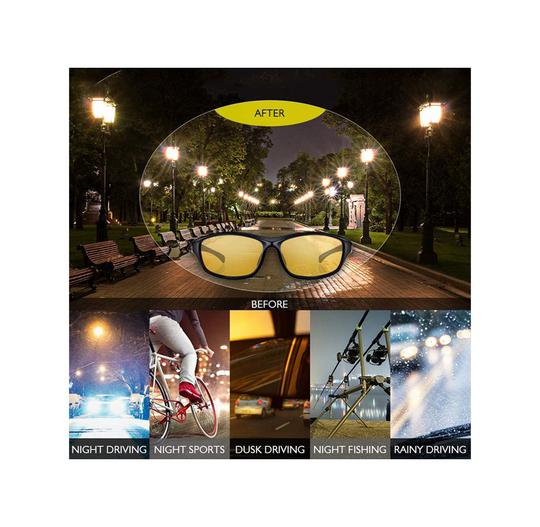 Unlike regular dark sunglasses, the night vision glasses don’t block a significant amount of light and it has a high light transmission ratio compared to daytime sunglasses which are designed to block sunlight but make it almost impossible to see at night.